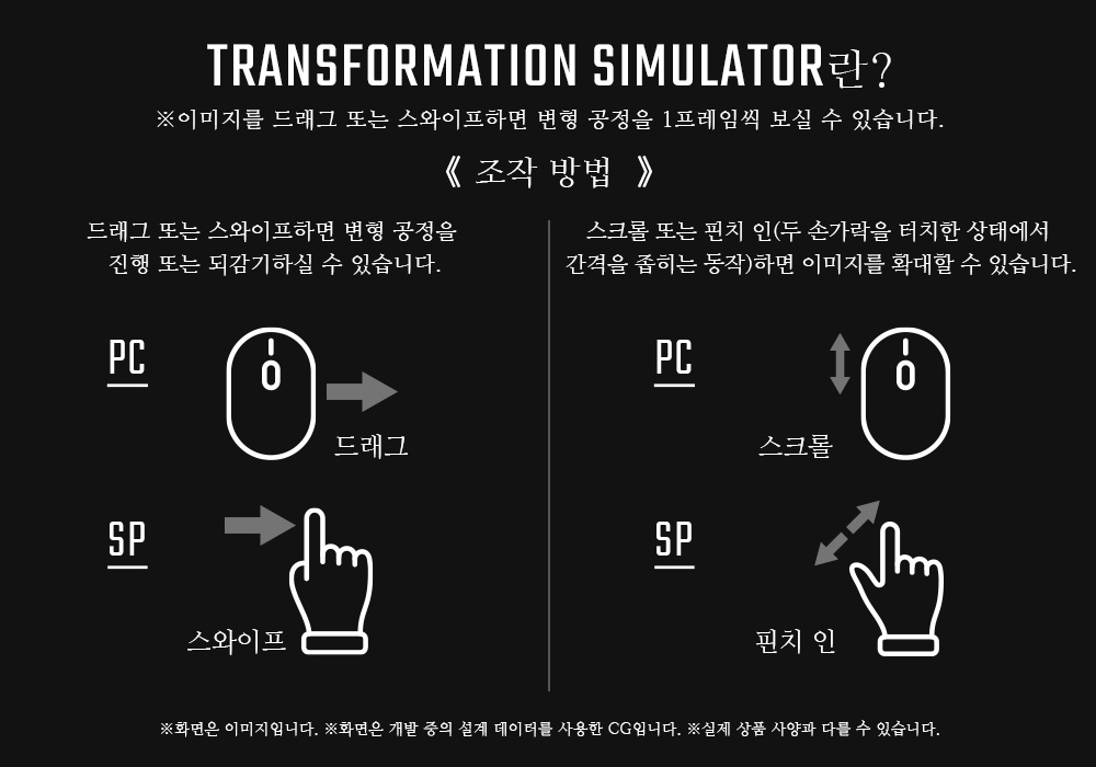 ※이미지를 드래그 또는 스와이프하면 변형 공정을 1프레임씩 보실 수 있습니다.