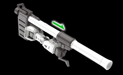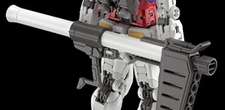 빔 라이플의 포어 그립은 총신의 회전축에 의해 움직인다. 그립을 옆으로 올려 양손에 들고 있는 극 중 포즈를 재현했다. RG Ver.2.0에서는 이 그립에 앞뒤로 움직이는 구조도 추가되어 실현 가능한 자세의 자유도가 높아졌다.