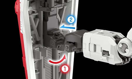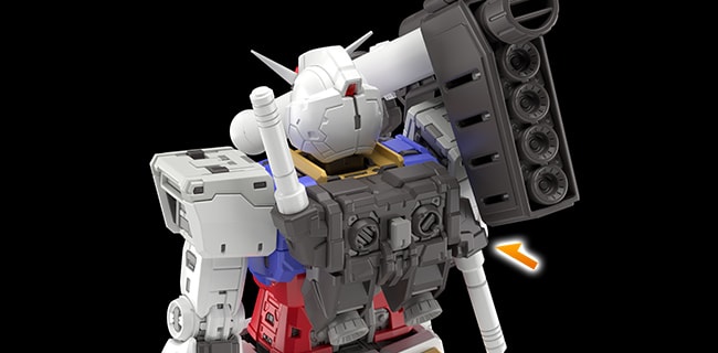 백팩과 허리 부분에는 무장이나 액션 베이스용 연결 구멍이 총 3개 내장되어 있다. 사용하지 않을 때는 각각 가동식 커버 파츠에 덮여 있어 디자인을 해치지 않는다.