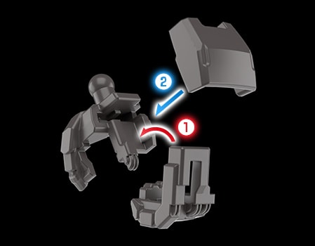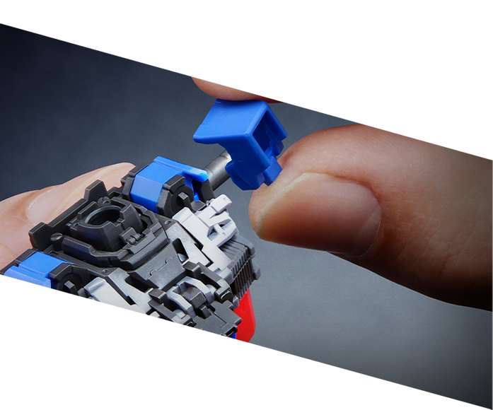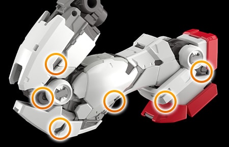 '손'을 구성하는 파츠는 조립 시 잠금이 걸리는 최신 설계를 채용했다. 무기를 쥘 때 하중이 가해져도 쉽게 빠지지 않는다.