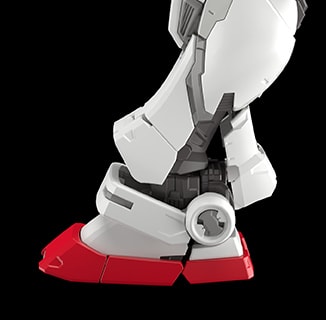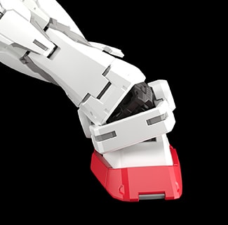 고관절의 가동 축을 움직여 허벅지를 크게 들어 올리는 것이 가능. 극단적인 자세를 취했을 때도 몸의 자연스러운 흐름이 무너지지 않아 "기동전사 건담" 제1화 '건담, 대지에 서다!!'의 명장면을 자연스럽게 연출할 수 있다.