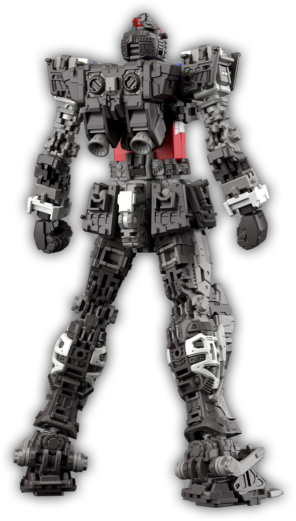 코어 파이터는 코어 블록으로 변형 가능. 소형 변형 전투기의 모습에서 프로포션 재현은 물론, 소형 코어 블록 안에 새로 개발한 보조 관절 기믹을 내장하여 건담이 다양한 자세를 취할 수 있도록 한다