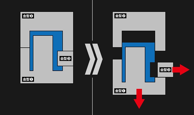 보통 프라모델은 입체를 본뜬 금형 두 장을 위아래로 맞대고 그 내부에 수지를 부어 성형한다. 완성되면 금형을 위아래로 벗기기 때문에 파츠 옆면에는 디테일이나 구멍 등을 넣을 수가 없는데, 슬라이드 금형은 옆쪽으로 하나 이상의 금형(슬라이드 금형)을 끼워 넣음으로써 그 문제를 해결한다. 활용하기에 따라서는 원통형 파츠를 쪼개지 않고 일체 성형도 가능하기 때문에 파츠의 디테일을 살리고 조립 공정을 단축할 수 시킨다.