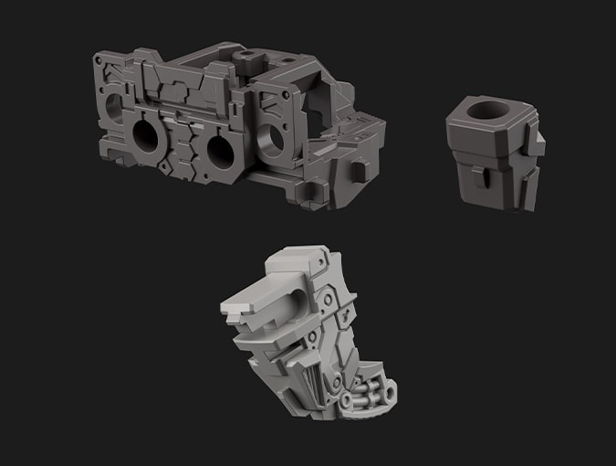 슬라이드 금형을 주로 사용하여 파츠를 성형함으로써 모든 방향의 디테일을 살렸다. 이러한 파츠는 정밀감의 향상 뿐만 아니라, 조립 과정에서 파츠 여러 개를 쌓아 올릴 필요가 없어 작업 시간이 단축되었다.