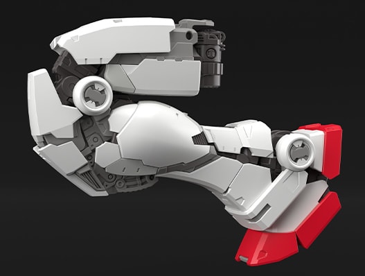 다리 장갑은 연동되어 움직이는 슬라이드 기구를 채용했다. 무릎이 움직일 때 드러나는 관절 프레임을 장갑으로 덮어 빈틈을 없앴으며, 허벅지에서 무릎으로 이어지는 아름다운 실루엣은 유지했다.
