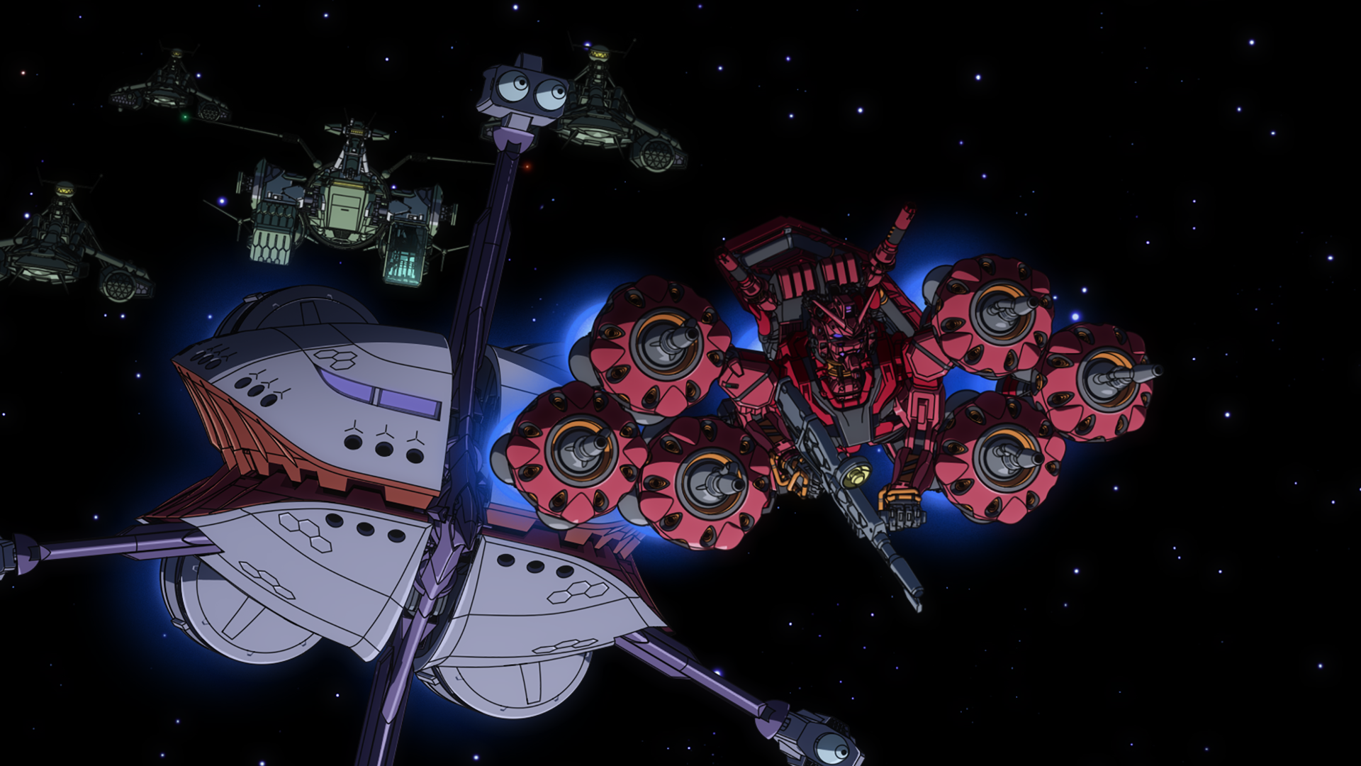 1년 전쟁 말기, 지구연방군의 솔로몬 요새 함락 작전을 저지하고자 샤아가 이끄는 소돈 함대가 출격한다. 월면 도시 그라나다를 지키기 위해서.그로부터 5년 뒤, 그라나다에는 키시리아와 함께 냐안의 모습도 보였다.