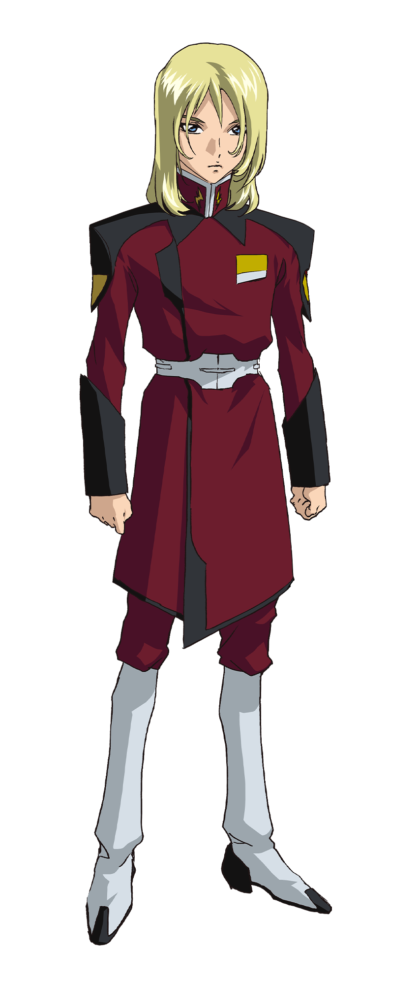 A crew of the Minerva. He is the pilot of the commander unit, Blaze ZAKU Phantom. He doesn’t talk much but calm and intelligent, and very skilled in combat. His birthplace and details are unknown.